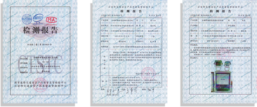 具有公安部檢測中心出具的《公路車輛智能檢測記錄系統(tǒng)》檢測報告、《機(jī)動車測速儀》