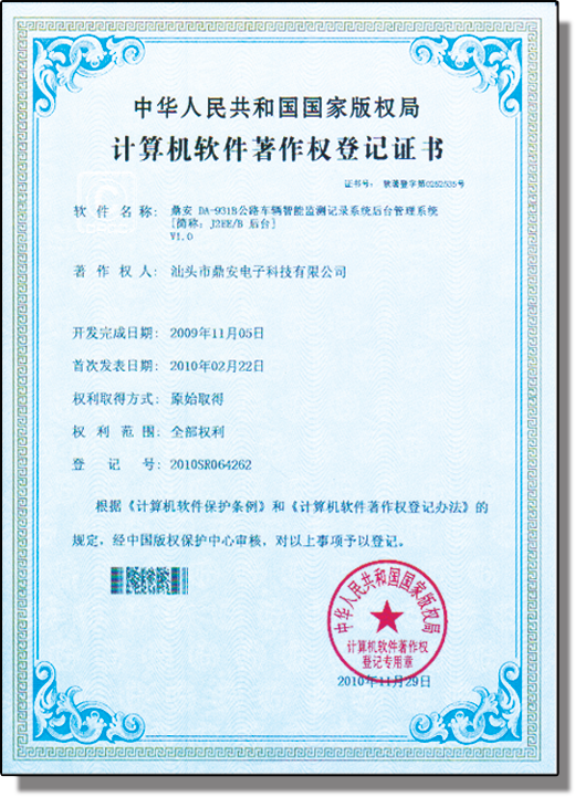 DA-931后平臺數(shù)據(jù)管理系統(tǒng)嚴格按照GA/T 497-2009《公路車輛智能監(jiān)測記錄系統(tǒng)通用技術(shù)條件》、《廣東省治安卡口視頻監(jiān)控系統(tǒng)建設(shè)規(guī)范》、GA/T 496–2009《闖紅燈自動記錄系統(tǒng)通用技術(shù)條件》等相關(guān)公共安全行業(yè)標準,對整個系統(tǒng)建設(shè)進行了詳細規(guī)劃設(shè)計,充分體現(xiàn)出安全、實用、合理、易維護等特點。該系統(tǒng)已得到國家版權(quán)局計算機軟件著作登記權(quán)證書(軟著登字第0252535號)。